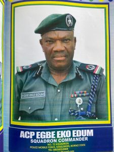 Assistant Commissioner of Police, ACP. Egbe Eko Edum, the Commanding Officer of No.73 PMF Squadron, Magumeri, Borno state, has been axed to death in Calabar, Cross River State Capital by unknown men. ACP Egbe Eko Edum, the Commanding Officer of No.73 PMF Squadron, Magumeri, Borno state.