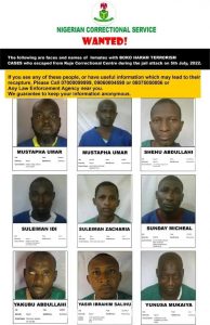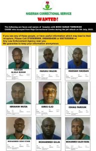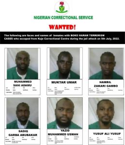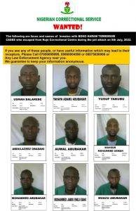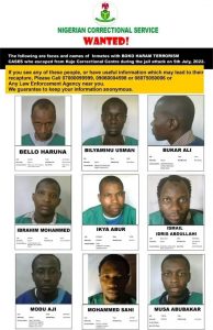 While declaring them wanted, the Nigerian Correctional Service (NCoS) confirmed that they all escaped from the correctional facility which was attacked by terrorists on Tuesday night.