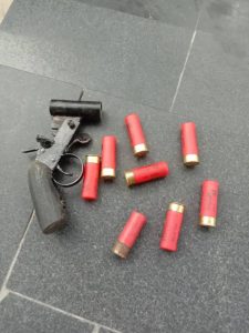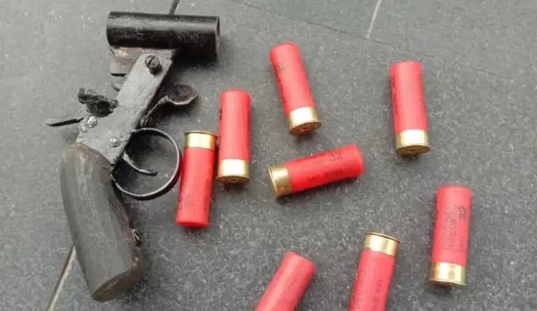 One locally made cut-to-size gun with six live cartridges and two expanded cartridges were recovered. Serious manhunt for the other members of the gang is ongoing.’
