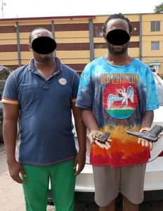 Operatives of the Lagos State Police Command, Ajah Division, have arrested one Bada Bayo ‘m’ and Segun Ogundele ‘m’ both aged 45 along Budo Specialist Hospital road Ajah Lagos state.