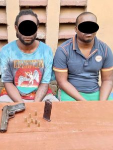 After a search of the suspects and vehicle, an English Beretta pistol with seven rounds of live ammunition was found in their possession. Investigation reveals that the suspects are cultists.