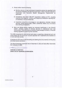 The directive becomes effective from January 9, 2023, the apex bank maintained, saying the adjustment was based on feedback received from stakeholders after its initial announcement on December 6, 2022.