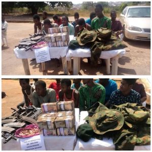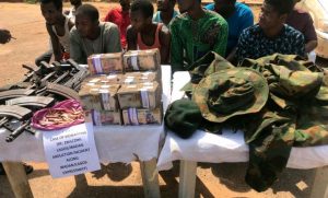Osifeso said that items recovered from the suspects included cash of N7.5 million, four AK-47 rifles, 75 AK-47 live ammunition, two pairs of military camouflage and one police beret.