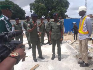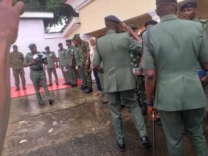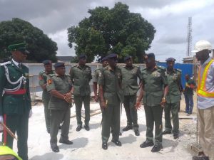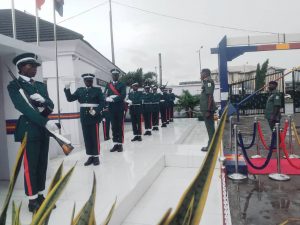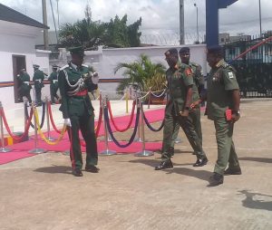 Thereafter, there was handing over notes and a new flag was presented to him after which he was decorated with the corps insignia which was followed by the inspection of ongoing projects and other facilities within the Barracks.