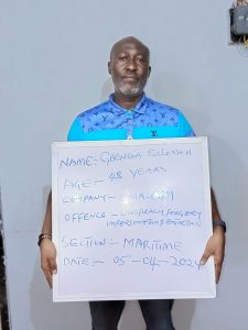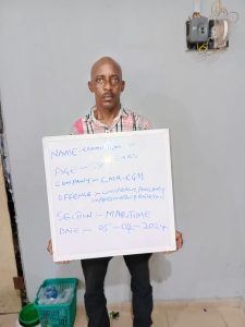 Operatives of the Maritime Police Command, Lagos on Tuesday 2nd April, 2024 arrested two suspects for the offences of Conspiracy, Forgery of Maritime Police Command official/investigation documents, Impersonation of the Command, Blackmailing and Extortion of unsuspecting members of the public doing businesses at the nation’s ports.