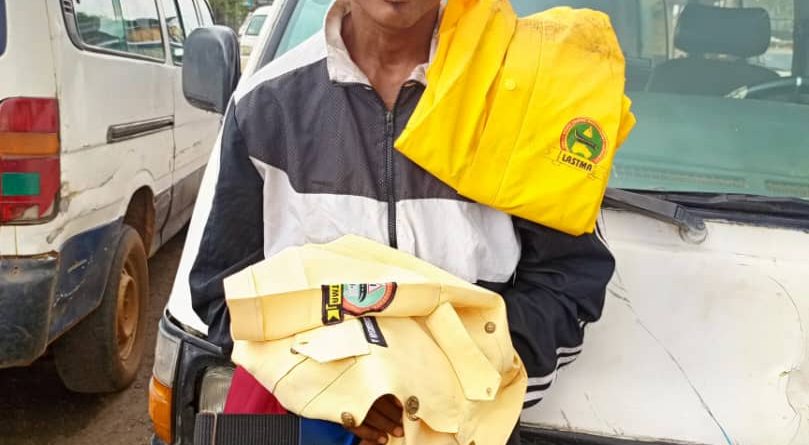 Mr Adebayo Taofiq Director, Public Affairs and Enlightenment Department, LASTMA, in a statement said operating a white Hiace Coaster Bus with the license plate KJA 724 YJ, Mr. Taiwo utilized this guise to harass drivers in the area. Upon a meticulous search of his vehicle, LASTMA Officers uncovered an official LASTMA uniform, including a branded raincoat, among his possessions, confirming his intentions to deceive.