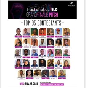 The top contestants include: Northino, Our Haven, Celia, Nadir, Nimsy Agro, Hebron Chain, Paystrait, DevMe, Preview, Coconoto, EduGaze, Dokia, Gbale Prime, Health 4 Moni, Digiland, Abinci, Unifi, CyclexAfrica, Airify, Kwab, Gnergy, University X, AI Teacha, Code Red, APISentry, Fegor, TrashCoin, Paywise, Pandascrow, Lexia AI, Bunce, Bloom Beauty, MyItura, Accede, Scratop Nigeria Limited.