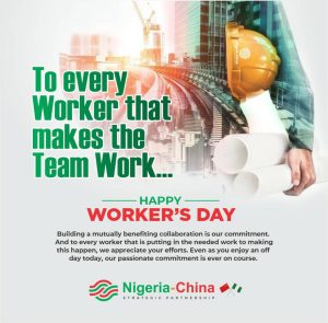 NIGERIA-CHINA STRATEGIC PARTNERSHIP MARKS WORKERS’ DAY, WISHES A ROBUST RELATIONSHIP